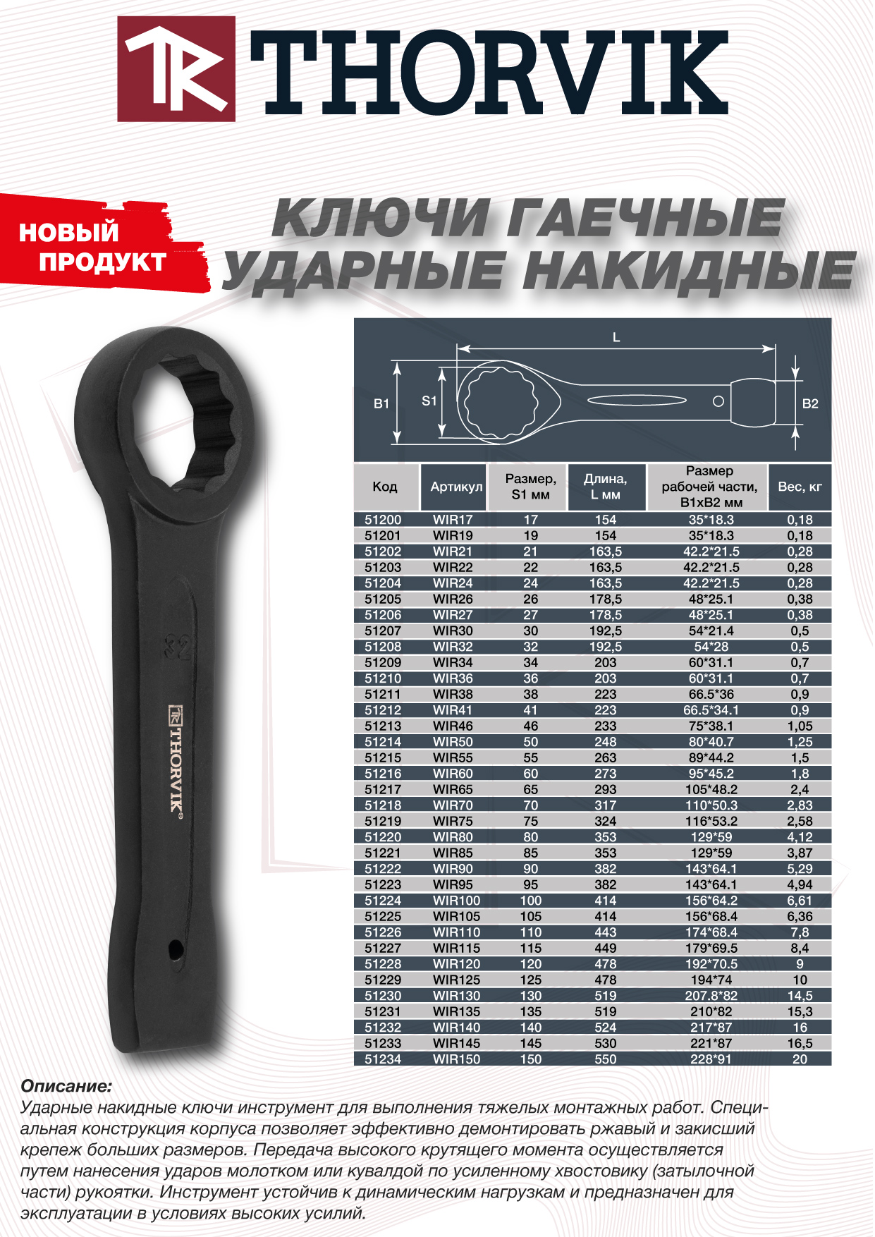 WIR95 Ключ гаечный ударный накидной, 95 мм Thorvik