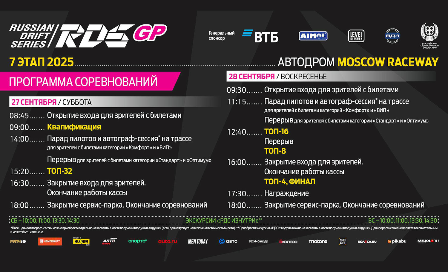 27-28 сентября состоится долгожданный седьмой - финальный этап Гран-При Российской Дрифт Серии, где один из пилотов получит титул чемпиона!