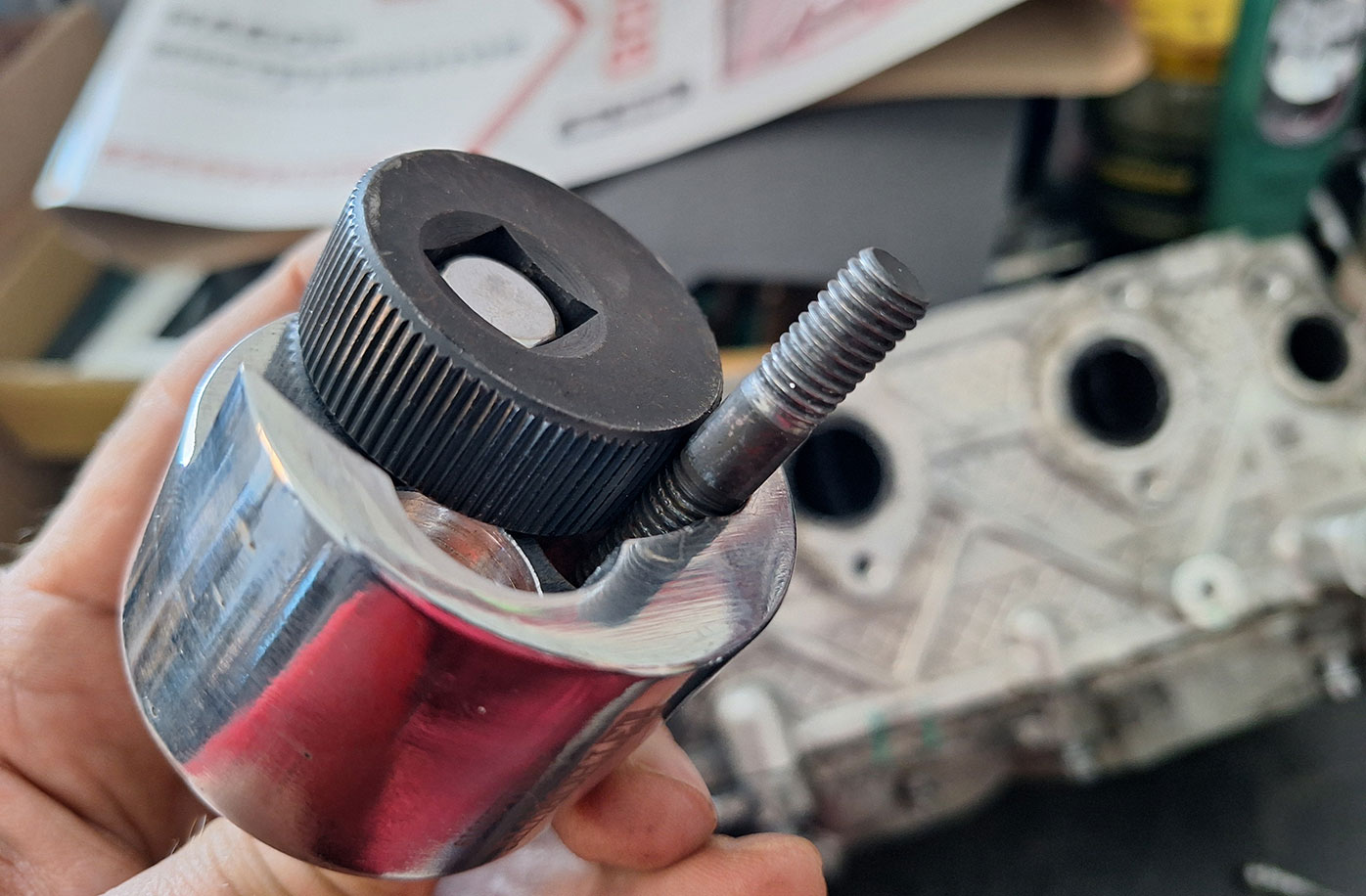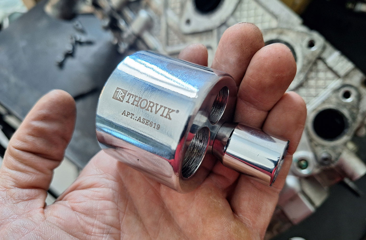 Второй способ уже поинтереснее, да и более быстрый, так как шпилька выкручивается при помощи специального инструмента - шпильковёрта. В данном случае применяется шпильковёрт модели Thorvik ASE619.