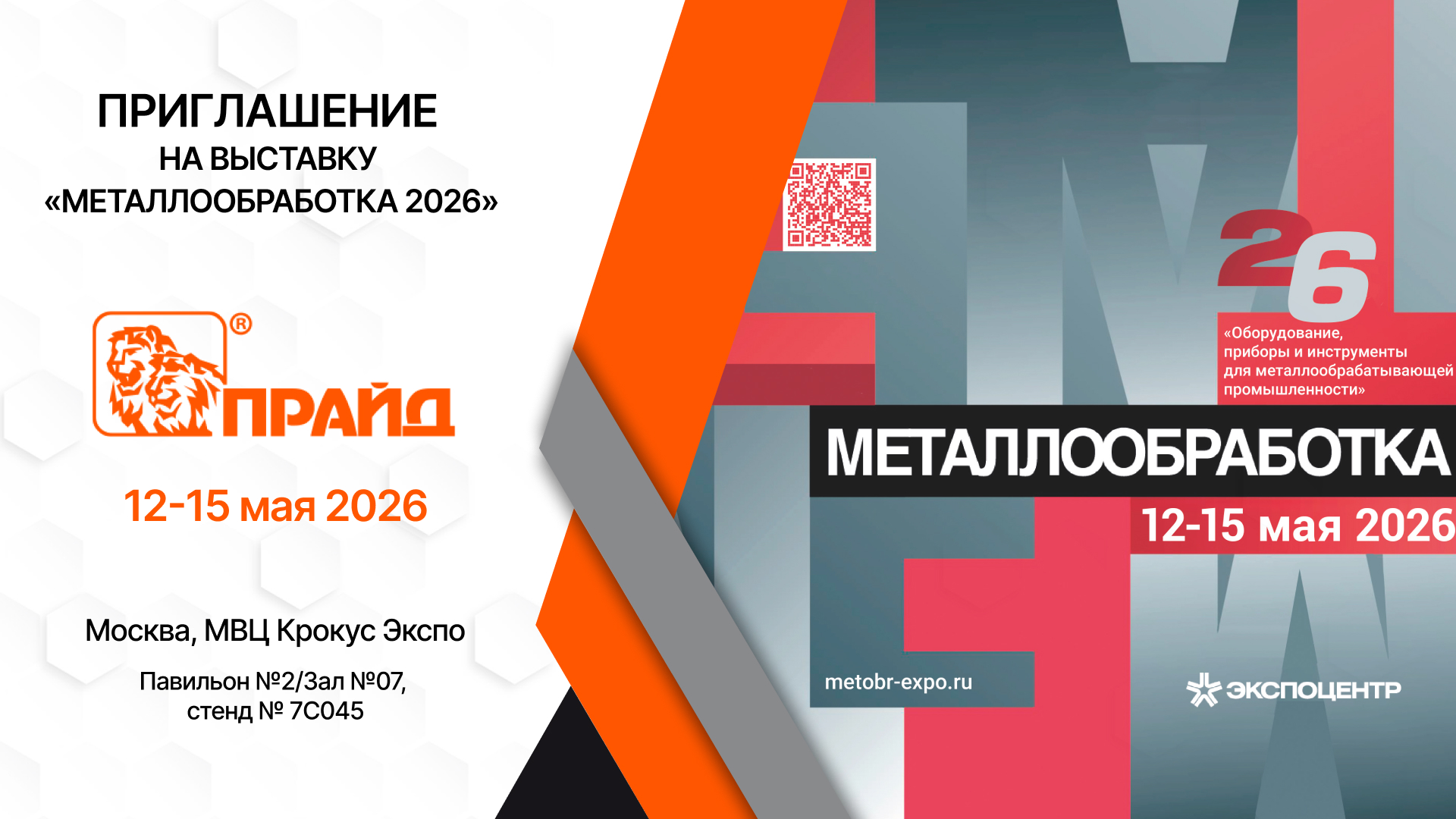 С 12 по 15 мая 2026 года в Москве, в МВЦ "Крокус Экспо", соберутся ведущие представители отрасли, производители, поставщики и специалисты рынка на выставке "Металлообработка 2026". Для нас это отличная возможность встретиться с партнерами, обсудить актуальные задачи, показать наши решения и пообщаться лично.