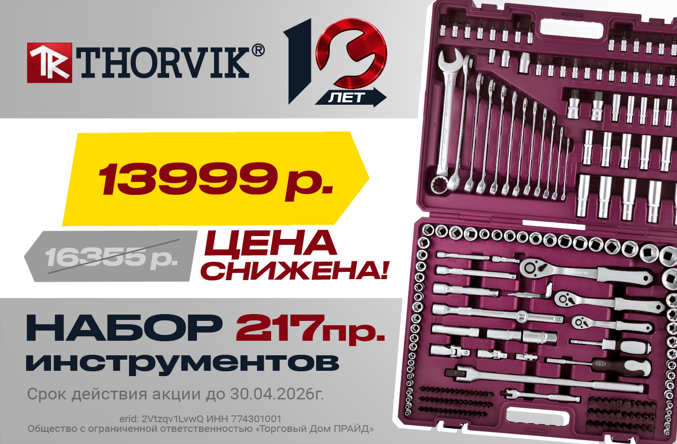 В апреле на набор инструментов THORVIK 217 предметов действует специальная цена.