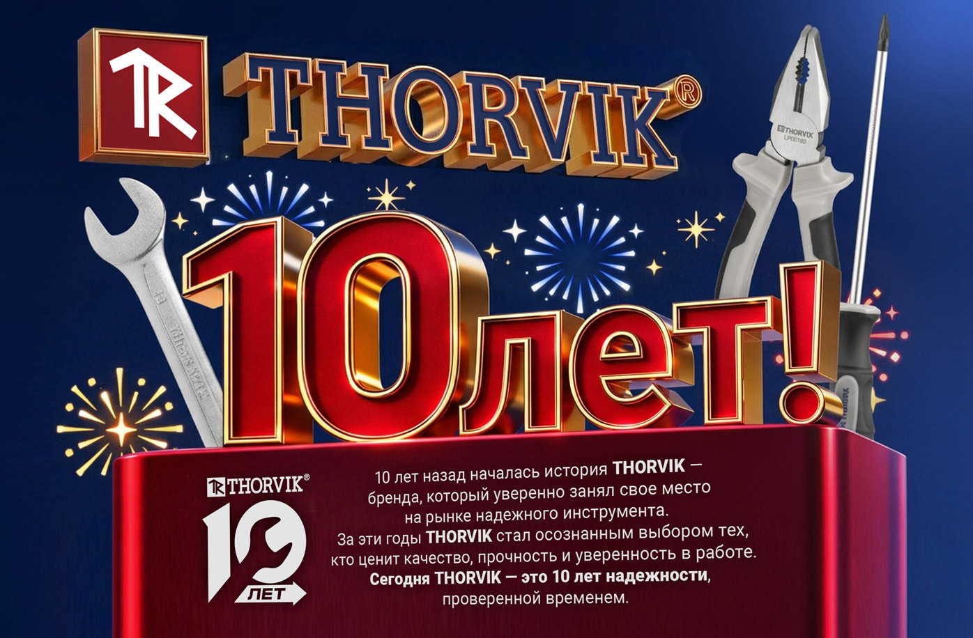 7 апреля бренду THORVIK исполняется 10 лет. За это время THORVIK прошел путь от новой торговой марки до узнаваемого бренда надежного инструмента, которому доверяют профессионалы и те, кто осознанно выбирает качество, практичность и уверенность в результате.