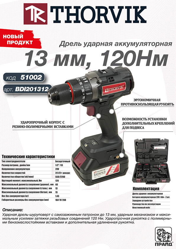 Новые аккумуляторные дрели THORVIK — это результат многолетнего опыта и тесного сотрудничества с ведущими производителями. Мы сделали все, чтобы наши инструменты стали надежными помощниками в любой задаче. Удобство, мощность и долговечность — ключевые характеристики, на которые мы ориентировались при разработке.