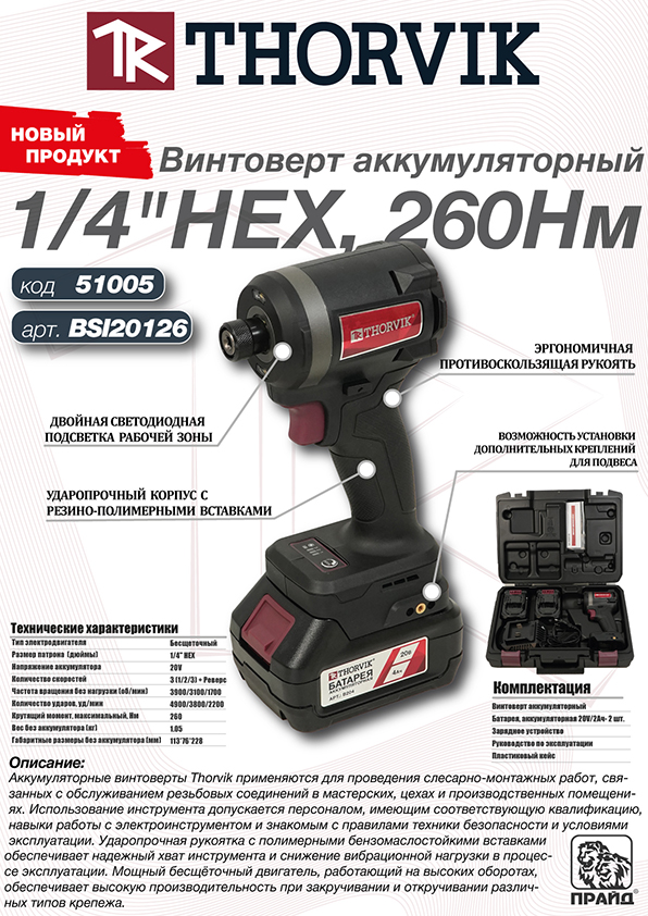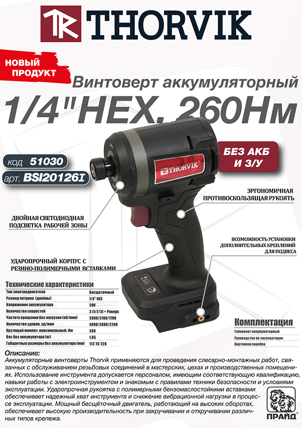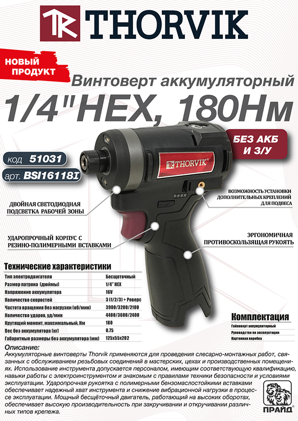 THORVIK представляет новинку — аккумуляторные винтоверты, созданные для интенсивной работы в сервисах, мастерских и производственных зонах. Новые модели дополняют линейку аккумуляторного инструмента, предлагая оптимальный баланс мощности, мобильности и эргономики.