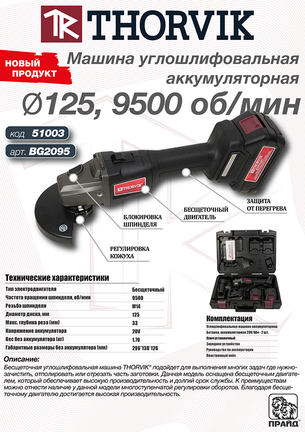Новые модели — это логичное продолжение аккумуляторной линейки THORVIK : максимум мобильности без потери мощности.